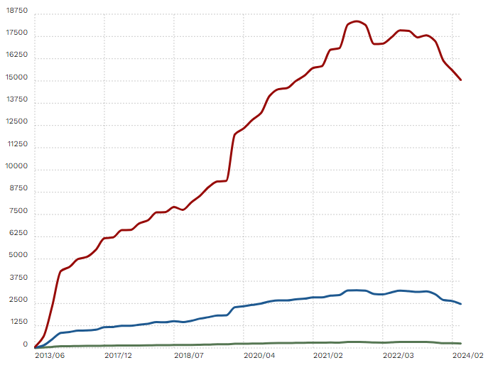 Packagist is the most sought-after repository of PHP packages. Here, developers share and download reusable code components. Again, Laravel is head and shoulders above other competitors, with 24 million downloads.
